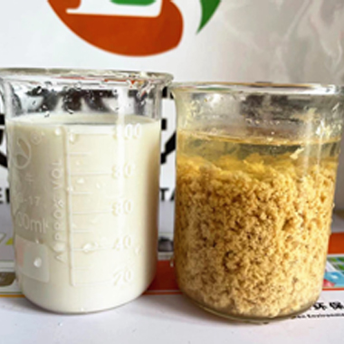 綠森環(huán)保技術(shù)團隊?wèi)?yīng)某化妝品客戶要求上門技術(shù)服務(wù),現(xiàn)場給客戶廢水破乳劑中試。客戶廢水:沐浴露廢水,特點:含有乳化劑、增稠劑、抗氧化劑、防腐殺菌劑和香精色素等,廢水顏色:淺黃色。使用破乳劑破乳后廢水上清液清澈透明,如下圖       &nbs···